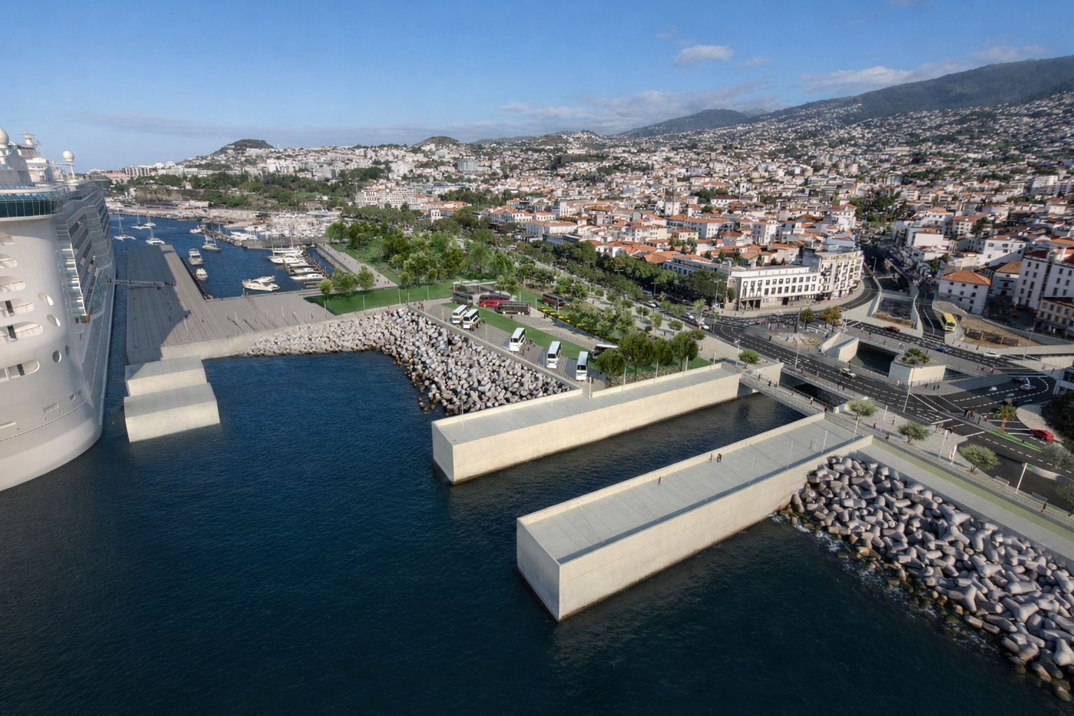The last phase of the reconstruction front sea Funchal is the berth for cruise ships due to be completed next year in May. As a result of time of 20 February 2010 and due to the essential and urgent dredging of the end portions of the three rivers that flow into the port of Funchal, was necessary to set up a temporary deposit of inert east of the City Pier, between this and the mouth of the Ribeira de Santa Luzia.